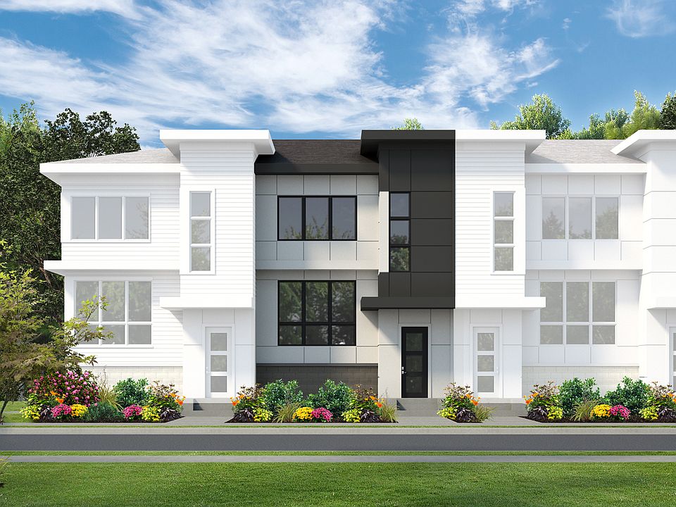 The Modern Rowhouse. Our two-story attached townhome with tuck-under garage is a rowhouse at heart with thoroughly modern sensibilities. A central kitchen anchors this interior unit, and a triple-slider opens the dining room to a private glass-railed deck. The two-bedroom plan features an upper-level loft and owner's suite freestanding tub. Options include a third bedroom and numerous built-ins to customize your space.*Home prices refer to starting from price and do not include optional home elevations, options, upgrades, or lot premiums. Prices, square footage, and availability are subject to change without notice. Photos, virtual/video tours, and/or illustrations may not depict actual home plan configuration. Features, materials and finishes shown may contain options that are not included in starting from price.