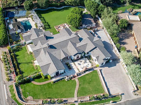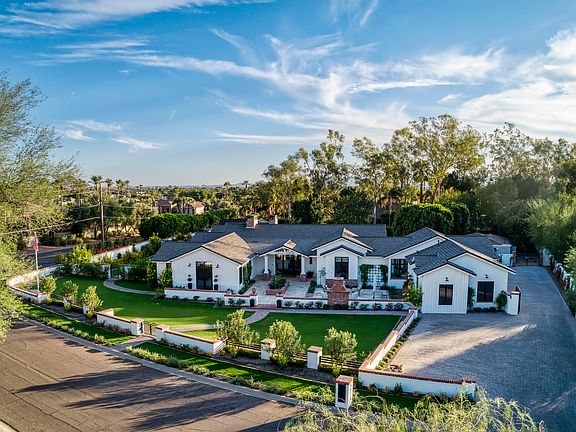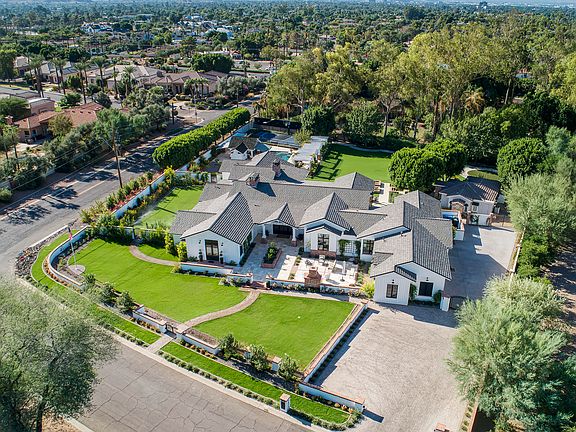 Exquisite new estate property on over an acre with views of Camelback Mountain! The main house features expansive rooms, soaring ceilings, and incredible natural light. With 4 bedrooms, each opening onto its own patio, 4 baths, study, game room, fabulous laundry/office, butter pantry, and large interior storage room, the floorplan is ideal for entertaining large groups as well as intimate family gatherings. Subzero and Wolf kitchen, double islands, 2 dishwashers, and oversized bulter pantry and coffee/smoothie bar - it's a cook's dream! The graceful Master Retreat centers on an incredible stone fireplace and opens to a Master Bath that rivals the most exclusive resorts in town! The luxury finishes will impress: Caesar stone counters, custom cabinetry and built-ins, wonderful lighting and fixtures, porcelain tile floors with Carrara inlays, oak wood floors, and much more - every detail was perfectly executed! The Game Room is set up for entertaining or kicking back with refrigerator and microwave for snacks. Whole-house water filtration. Huge travertine patios on both sides of the house feature fireplaces and misters. The charming guest house is incredible in its own right! With a full kitchen, living area, laundry, 2 bedrooms and 2 baths, your guests may never leave! Gated parking and an over-sized/over-height 4-car garage with epoxy floor and air-conditioning, with plenty of additional parking. Who needs to leave for vacation with this backyard? The incredible grounds offer an expansive grass area, large heated pool with inlaid mosaic tile and a pool ramada with its own bath, storage, and barbeque area. Pickle ball anyone? Enjoy hours of fun on your own sport court just beyond the pool area. This elegant property is truly an oasis in the heart of the most sought-after neighborhood in town! Call for a private showing today.