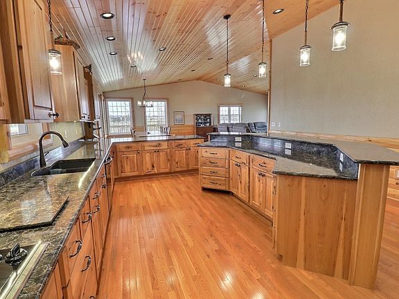 Looking for TWO Homes for price of ONE this investment is perfect for an Airbnb, forever home or seasonal cabin look no further this is your DREAM home. This attention to detail took 5 plus years to create and plus a New Roof in 2022. This MODERN AMISH WOOD style Cabin with (two full size KITCHENS) on 1.302 acres with a Custom Wood Wrap Around Deck on private land with a view of DOUGLAS BAY & LAKE SAKAKAWEA these breath taking views of rolling hills and Douglas Bay are priceless. At the end of a private road, you will love peaceful views of the wildlife and hearing the water glisten. This custom home has Amish style wood on ceilings, floors, walls, kitchen, stairs and more. This is more than a home it is a staycation and a piece of paradise on only Dreams about. This gorgeous 4/5-bedroom, 3 bath RANCH style with walk out ON DOUGLAS BAY has your name written all over it! Avoid the hustle, bustle and noisy setting of the city life and enjoy the peaceful, relaxing, and tranquil setting of your new private home with fishing right by. Recently built completed in 2019 , this home has vaulted ceilings, huge laundry room on the main level, gourmet kitchen with hidden oversized pantry, granite countertops, 2 massive eating islands, knotty Hickory cabinets, and numerous windows for the views. The master suite has double vanity, his and her closets, massive jet tub, and massive custom tile shower. This main level has 3 rooms an office, laundry and master, with one of the rooms currently being used as an office. The walk out basement has 3 additional bedrooms, a full-size kitchen for the bar area including gas range, backsplash, and Cambrian quartz counters, a large storage room, an awesome theater area/family room/game room or get away to private brick patio. The OVERSIZED 1479 sq ft garage is heated and finished to perfection. This home has a 2 zoned GEOTHERMAL heating and cooling system. The exterior of the home has a high-quality LP Smart Siding with awesome warranty! And let's talk about the outside.....beautiful sunrises, gorgeous sunsets, FISHERMANS DREAM LAND, boat access nearby or sit in the living room with rock fireplace GAZING at inviting view of county and water. No matter what you decide, you will love this home and hypnotizing setting that only water & rolling hills can bring to the soul. Don't wait or your DREAM HOME WILL BE GONE!
