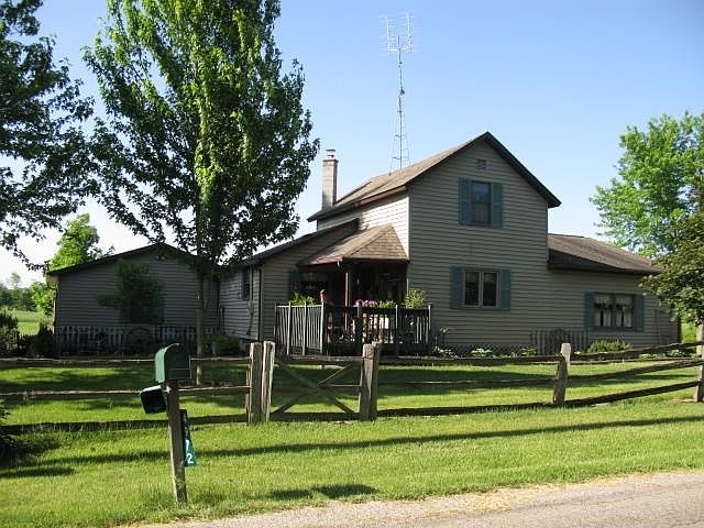 This 2600 sq. ft. 3 bedroom/2 bath home sits on 4 +/- acres has so much to offer, geo-thermal heating and air, new on-demand hot water heater, newer windows, and newer well. The appliances are all in good condition and will remain with the house. Two car attached heated garage. There is a 28 x 14 finished bonus room in the basement. Outside is an asphalt driveway, 2 very nice pole barns one of which has a concrete floor and is insulated, both come with automatic overhead doors and openers. There is a 12 x 30 insulated dog kennel and the entire yard is equipped with an electronic hidden dog fence. The landscaping is stunning; there is a koi pond in the back, fruit trees, and tons of perennials. This home is reduced to $239,000.