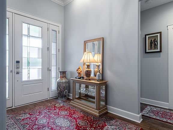 End Unit Home located in the gated community of Villas at Stonecrest. Expansive well laid out, open concept floor plan with tall ceilings, laminated hardwood flooring, floor to ceiling windows equipped with custom window shades. The gourmet kitchen is loaded with high end appliances, Amish cabinetry, custom made range hood and granite countertops. It has a large curved island with beverage refrigerator and wine storage. The den and office space can be used as a 3rd Bedroom. Primary Bedroom is bright and airy, with spa like bathroom with radiant heated flooring and heated towel bars, oversized shower and quartz double sink countertops. 2 car oversized garage with floored attic storage. The oversized patio is lined with a perennial garden.