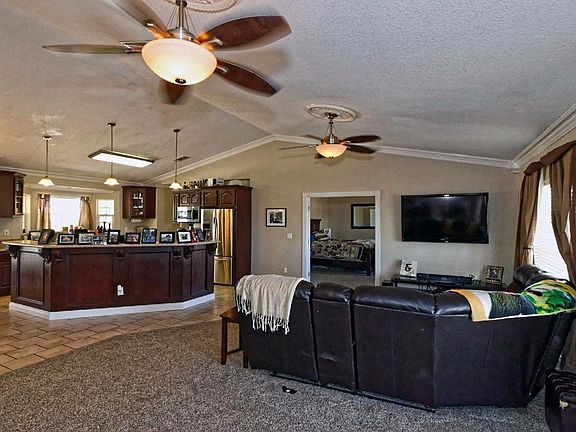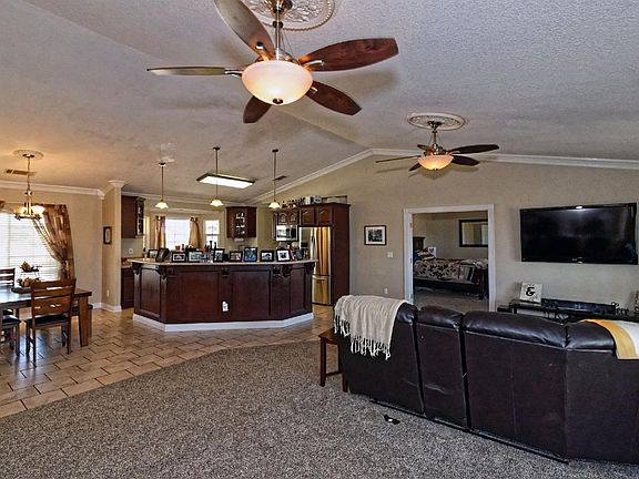 Beautiful open concept living! Gourmet kitchen with granite counter tops, stainless steel appliances, dark wood cabinets through out, split floor plan. Crown molding, upgraded light fixtures and ceiling fans in every room, vaulted ceilings. Double door entry into the master bedroom, master bathroom has tiled walk-in shower, separate jetted tub, dual vanity sinks, walk-in closet with custom shelving. Only 500 feet off the pavement! Truly a must see!