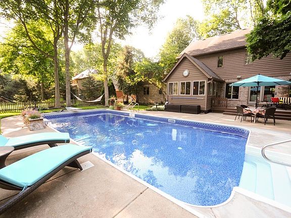 A rare find in Carmel, this magnificent custom built home is nestled amongst mature trees. The light & bright kitchen was transformed this past winter & features an XL island, Cambria quartz & high end cabinetry. Refinished hardwoods & fresh paint highlight the beautiful woodwork plus all new windows on main floor. Palatial master bedroom suite with tiled shower & heated ceramic tile floors. The backyard is paradise with a gorgeous in-ground pool, fountain, lush landscaping, deck & patio space.
