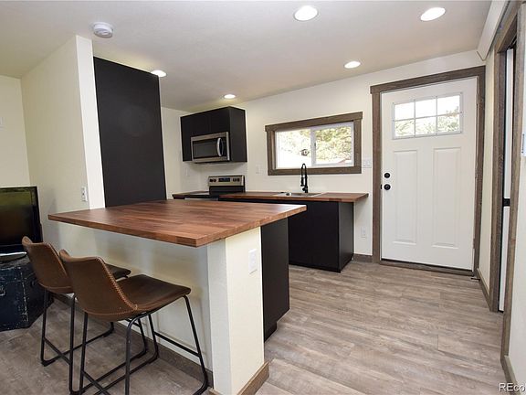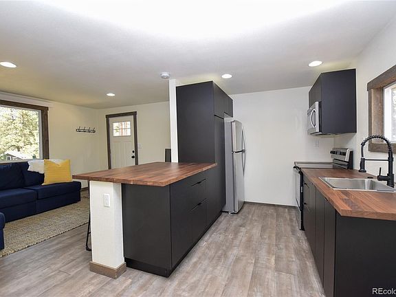 This is the perfect getaway cabin you've been waiting for! Completely remodeled from top to bottom, this home is ready for someone to make it their own! With just about everything being BRAND NEW, including the roof, siding, kitchen, stainless appliances, flooring, windows, washer/dryer, all the way down to the electrical, this is an absolutely immaculate mountain cabin. As you walk into the home, you will notice the beautiful view from the large picture window in the living room. The kitchen is just stunning with butcher block countertops and black cabinets. The outdoor space tops it off with room for a picnic table and a fire pit to really make you feel like you are at a mountain retreat. Within 5 minutes to downtown Evergreen and the lake, and just 15 minutes to I-70, this is a great central location to commute to work or to play!