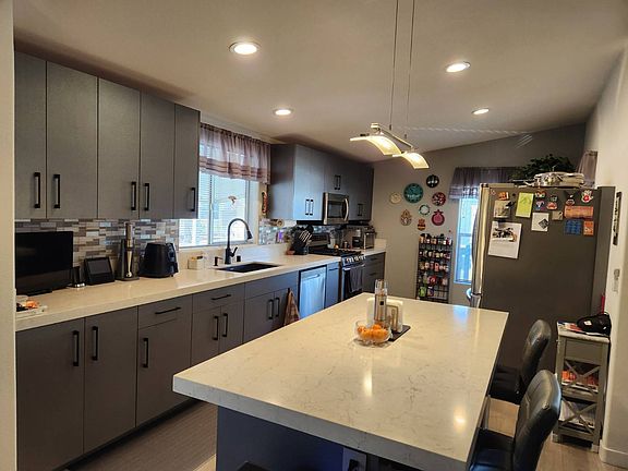 Upgraded and meticulously maintained is this original owner, 3 BR / 2BA, 2004 Fleetwood Manufactured Home located in the Cliffs Senior Mobile Home Park. Situated next door to the upper clubhouse, guest parking, library, and game room, you can be at your favorite activity in a minute! Some of the exterior home upgrades include a 1 1/2 year-old shingle roof, security doors, and wrap around deck perfect for enjoying the breeze and a private, partially fenced back yard with mature trees. Interior features include a vaulted ceiling, open floor plan, vinyl windows, vinyl plank flooring & 2 mini split air conditioning systems. Spacious kitchen recently remodeled with gorgeous cabinets, Quartz countertop, entertainers island, dishwasher, and trendy LED and pendant lighting. Laundry room has convenient storage cabinets with full size washer and dryer. Large Master bedroom has a walk in closet plus two windows for great cross flow ventilation, and bathroom has gorgeous step-in shower! Both bathrooms feature new vanities, counters, fixtures, and new toilets. Two car tandem carport with huge 8x12 shed and newer hot water heater. Community amenities include a heated swimming pool and spa, two clubhouses with billiard and ping pong table, full kitchen TV, shuffleboard, horseshoes, bbq and dog run. Conveniently located close to freeways, shopping, schools, hospitals, and restaurants. LBH2898