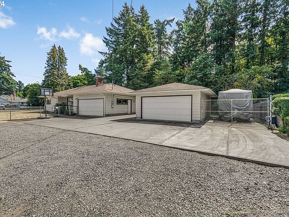 Charming ranch-style home set on just over a quarter-acre corner lot offers privacy and tranquility with a lush forest backdrop. Step inside to discover stunning hardwood floors that flow throughout the main level. The spacious living room features a floor-to-ceiling picture window and cozy fireplace, creating the perfect spot to relax. The adjacent dining room, with elegant French doors, opens to a covered patio, ideal for outdoor dining and entertaining. The kitchen has quaint tile countertops, lots of prep space, and added details that make it a true heart of the home. You'll find 3 generously sized bedrooms and a full bath with a tub/shower combo on the main floor. The unfinished basement provides even more space with a bonus area featuring a second fireplace, an additional bedroom, bathroom with shower, workshop, and storage area that's perfect for expanding your living space or creating a guest suite. Outside, the fully fenced yard offers a serene retreat with a covered patio, ideal for year-round enjoyment. The additional detached garage/shop provides workspace for projects, and the gated RV/boat storage ensures you have room for all your toys. With a new gas furnace and located just minutes from Providence Milwaukie Hospital, restaurants, shopping, and parks, this home is the perfect blend of comfort, convenience, and charm. [Home Energy Score = 4. HES Report at https://rpt.greenbuildingregistry.com/hes/OR10232668]
