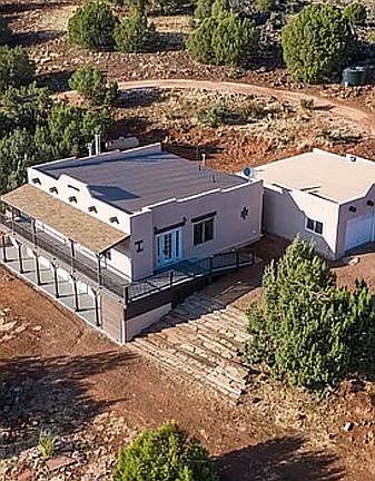 No need to leave home with these views! Don't miss out on this rare opportunity to own 40 acres just off Route 66. So many amenities. , cistern tank, water storage tanks(delivery available). The wood stove and gas fireplace add great value and charm. The side covered deck leads you to the back patio just off the master bedroom that has its own private entrance. The open floor concept brings in lots of light and shows off the beautiful finishings. 2nd kitchen on the lower level .The 2 car garage offers extra space for a small workshop. Lots of extra storage throughout the home. Don't miss out on this amazing property! Seller is giving buyer a 2,500.00 credit for cracked window and microwave. Approximately 1 acres fenced and cross fenced to keep you pets.