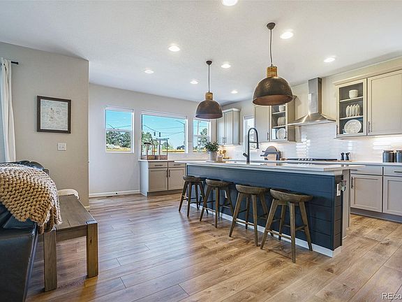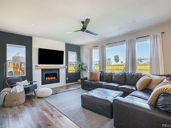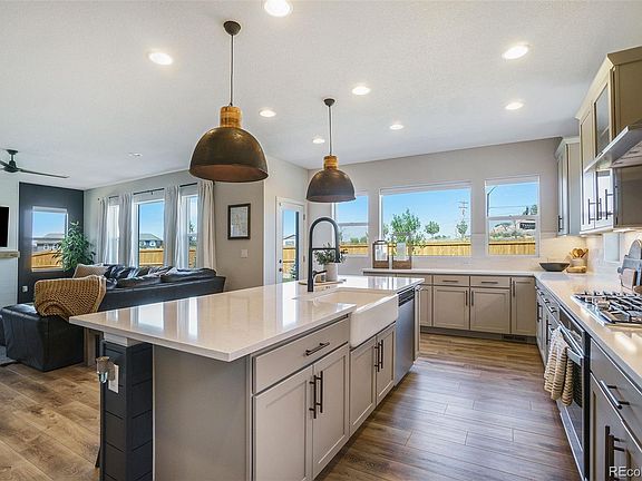 Gorgeous, updated home in Terrain that is only 2 years old! Owners spared no expense on upgrades! The beautiful chef's kitchen is a country-style kitchen with extended counter tops/larger island and extra cabinets, a farmhouse sink, soft closing cabinets with roll-out shelves inside of the bottom cabinets, a double oven, gas range with upgraded hood vent, tile backsplash, quartz countertops, upgraded light fixtures, under-cabinet lighting, 42" cabinets with crown molding. Open concept into the living room/family room that features a gas fireplace, custom wood mantle, and upgraded flooring for the main level. Flex room off of the family room can be used as an office, dining, or play room. Cute, custom bench and shiplap wall in the mud room. All windows are complete with window treatment. Ceiling fans in the great room and all of the upstairs bedrooms. Upgraded wood-stair railings. Primary bedroom includes a private en-suite complete with upgraded tile flooring, quartz countertop, undermount sinks, a walk-in shower with rain heads and floor to ceiling tile. Custom walk-in closet. Hanging pendant lights in the primary bedroom with separate switches and a custom wall design. Backyard Retreat is professionally landscaped with high quality turf grass (no water needed!), gas fire pit, stamped concrete patio and walkways, trees, shrubs, and a kids jungle gym. HUGE double sized lot with an open field and no homes behind! Ring doorbell included. This is a must-see home so set your showing today!