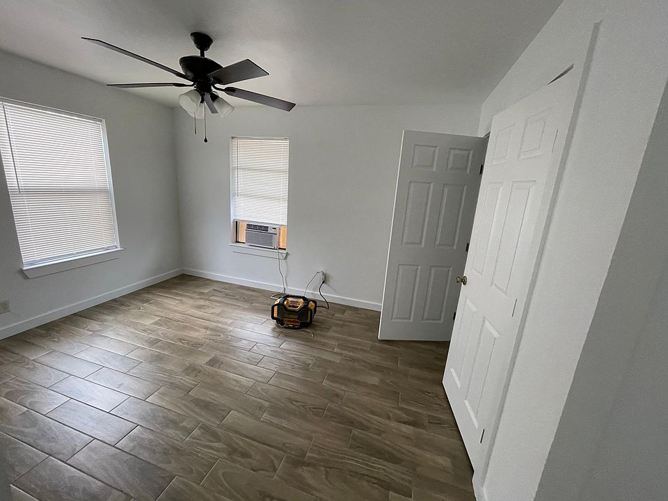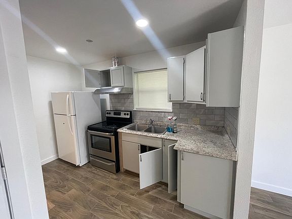 Recently remodeled and painted, new tile floors ,private backyard and parking for 2 cars Water and electricity and trash are included