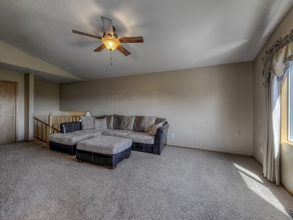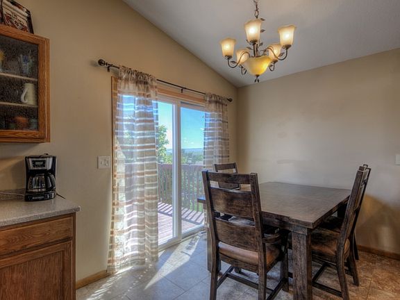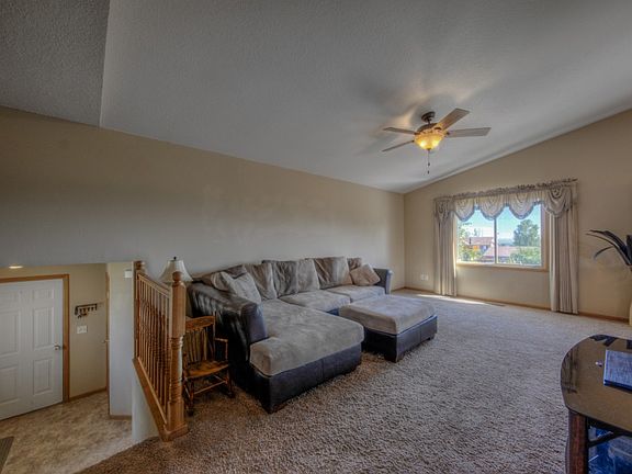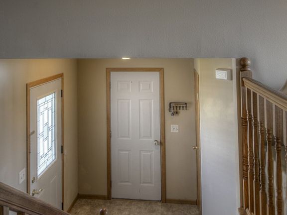 Isn't it nice to walk into a home with a large foyer? This unique home offers a large foyer with coat closet and laundry room with half bath as well as a large storage area beneath this foyer (accessed in the lower level). The main level offers a nice size living room, open kitchen with Corian counter top and lovely under mount quartz sink, spacious dining area with access to the deck , master bedroom with walk-in closet equipped with organizer, a second bedroom, and full bath (with direct access to the master bedroom). The lower level is completely finished with family room and full bath with exception of the utility room (with shelving). The lower level has three bedrooms - the largest bedroom or office has no closet. This home has newer carpet, paint, and has been very well maintained. Large, fenced backyard, water softener, wired for surround sound, wired for hot tub on the patio, and sprinkler system with drip system. Please admire the BEAUTIFUL view from the back deck!!!