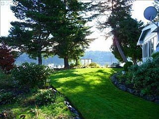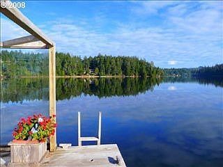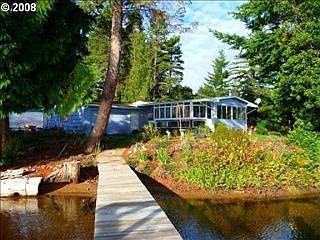 RARE WOAHINK LAKE LEVEL. One of a kind. Stunning panoramic views. Boat house plus a separate wind screened dock. Cozy Oregon lake living w/lake views from most rooms. 2 bdrm, 1.5 ba. Living room w/fireplace, dining area, master bedroom, office/exercise room all w/stunning views. Wind protected patio & sun porch. Detached 1368 SF oversized garage w/office & over 300 SF walk up storage area. Over 1 acre, approx. 347 ft of lake frontage. End of road privacy.