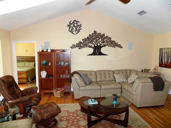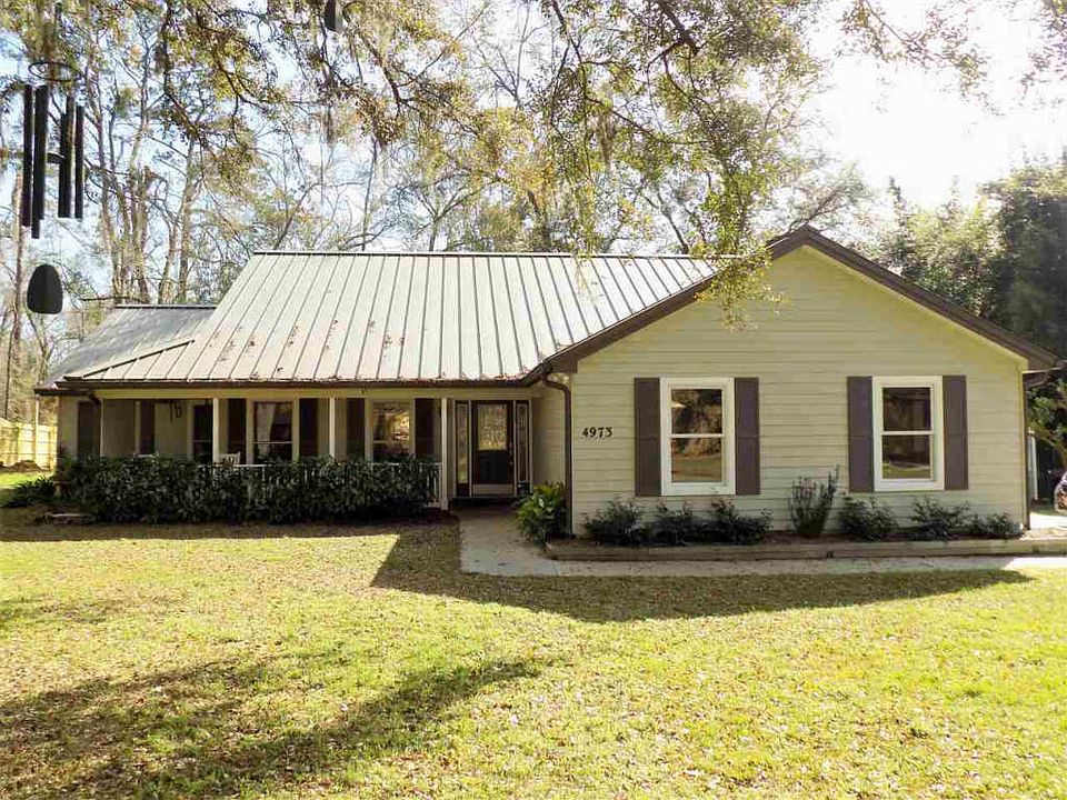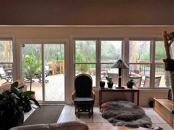 Serene privacy on 1.25 acres. 4 BR, 2BA home with back yard to die for. Large Great Room opening onto 29 foot long Sunroom with windows across the back looking out on a deck, koi pond and tropical paradise. Formal Dining currently being used as office, Bedrooms are split 2 and 2 although MBR is completely separate. Double walk-in closets in MBR, dual sinks in Bath with shower. Large eat-in Kitchen, 2-car garage and 50 gal. hot water heater. Deck stretches across back of home with lots of foliage around. Replaced HVAC in 2010, green certified metal roof in 2015. Electrical updated 2015 includes whole-house surge protector. Current termite bond w/Florida Pest Control.