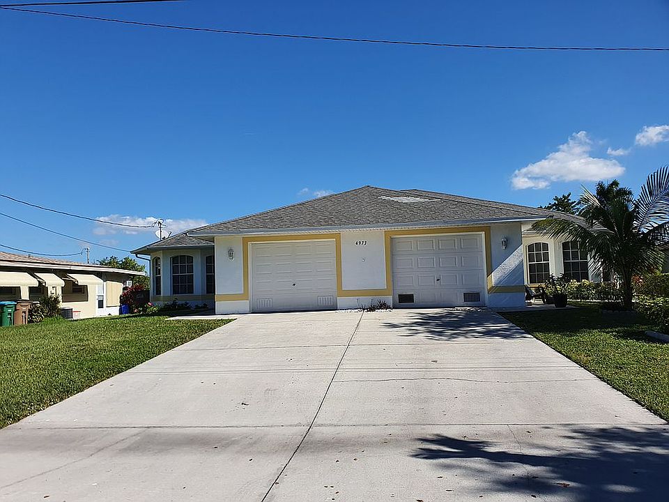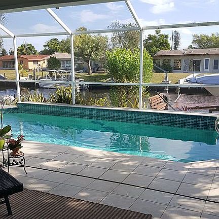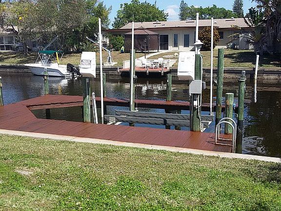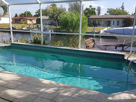 Rare find! All in one, move in on one side and keep the tenant on the other side of this well maintained DUPLEX! Great and convenient location, with pool and boat lift - hard to find one building with ALL these features! Gulf access duplex with 1 car garage on each side, with screened-in pool, wooden boat dock and lift (7000 lbs). Only 1 bridge to pass. 2 bedrooms and 2 bathrooms & lanai on each side, 2138 Sqft total. New roof March 2020. Great room with cathedral ceiling. Laundry in garage. Automated irrigation system. Tiles throughout and even on lanai. Updated bathroom(s). Fenced backyard. Convenient location: Walk to stores, restaurants and much more. Less than 10 minutes by car to Cape Coral beach & fishing pier and to the Yacht Club area with waterfront bar & grill. Enjoy living in paradise.