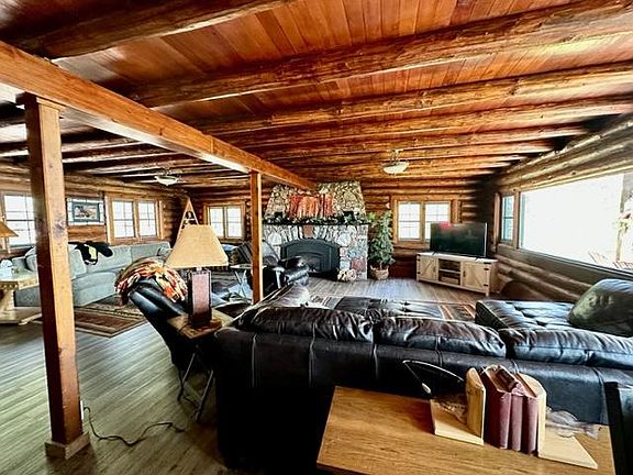 This iconic 4 BR, 2 BA log home has space for large groups/retreats, great for 2 families, zoned rec. w/Tourist Rooming Permit for daily/weekly rentals. Main floor has office/den, full bath, spacious living, kitchen, dining. Upper level with bedrooms, bath, and den. Unfinished basement for storage. Seller makes no representation as to condition of 2 small cabins, may be teardowns, fixer uppers for sure and could possibly provide expansion possibilities. Large lakeside porch, landscaped yard, level to pier and lake. All furniture and furnishings included. WI Valley Improvement owns shoreline, see Documents for Land Use Agreement and maps. The Willow Reservoir is a 4200+ acre lake with limited development, 73 mi. of shoreline (95% unspoiled), over 100 islands, is loaded with fish, and several boat landings. This region is a true Sportsmen’s Paradise surrounded by State Land, hunting, snowmobile, ATV trails and some of the best year ‘round fishing in Wisconsin! A very rare opportunity!