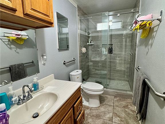 Key features include an updated kitchen and bathrooms, tile flooring throughout the main living areas, and a newly installed air conditioning system. The flat, usable 8,100 square foot lot provides plenty of outdoor space, including an enclosed patio, two additional covered patios, and a fully fenced yard for added privacy. The property also boasts a two-car attached garage with direct interior access, plus a concrete driveway for additional parking.