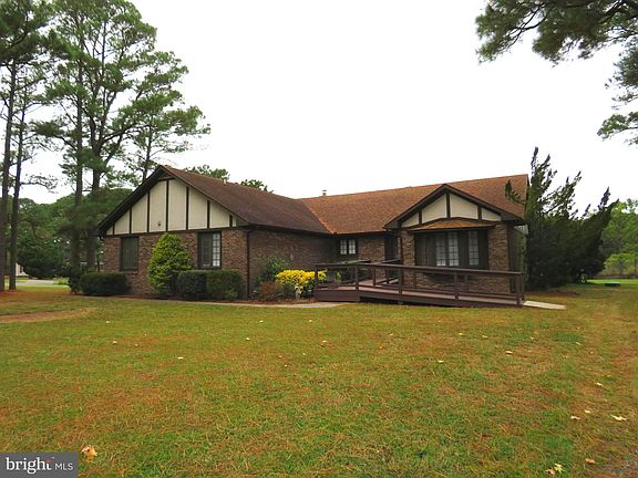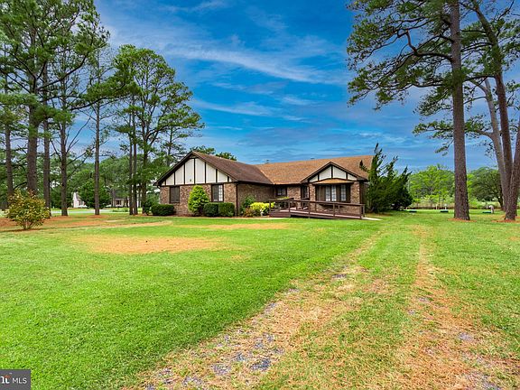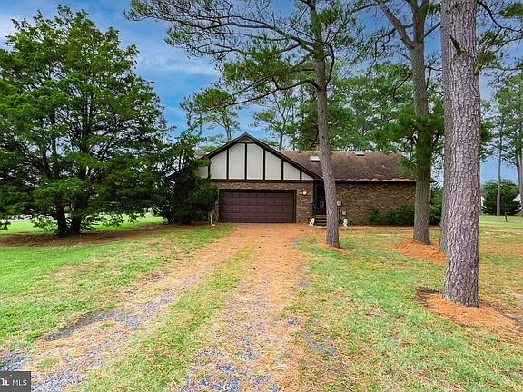 Attractive brick home on large lot (.89 ac) in waterfront community on corner lot. Bulkheaded with a dock, and four boat lift pilings, on wide canal that leads to Jones Creek. Open floor plan with large living room with fireplace and separate dining area. Enclosed sun room off of the living area leads to a deck for enjoying the birds and breezes. Master bedroom has bay window, large bathroom with dressing area, separate shower and tub. Hall bath has a walk in tub/shower, large mudroom/utility with separate pantry. Huge garage has a gardening/tool room with outside door, and a separate bathroom that needs some work. Hardwood flooring was installed in all living areas except where tiled in 2015. Heat pump was newly installed in October 2022, and septic 3150 gallon holding tank was installed in January 2022. Owner installed low flush toilets, water saving faucets, dishwasher and washing machine. Call agent for details. Interior photos by September 29.