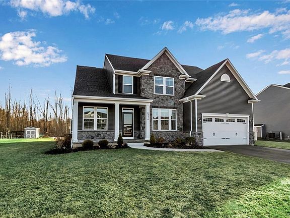Virtual Showings will be accomodated. Letâs move you into your gracious colonial. Formal DR with: crown molding and wainscoting, views of great room and open stairs. Sound dampened office, open concept living space offering 9â ceilings, large bright windows and entertaining space. Grand kitchen has granite cntrs, center isld-brkfst bar & morning room, pantry w/ storage. LR has cozy, stone wrapped, gas frpl. Mix of hand scraped engineered hrdwds and carpet. Mud room with cubby storage leads to 3-car, attached garage w/ cottage style doors + rear door. 4 bdrms with large closets, full bath, + bonus room (plyrm or 5th bdrm). Master suite offers a spacious bdrm, walk-in closet and glamour bath. 2nd fl laundry room. Open bsmnt is insulated w/ 2nd egress. Features: all energy star-qualified. 3D virtual tour available.