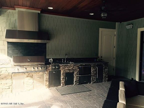 Large lot with professional landscaping, paver driveway and three car garage. The backyard has a large storage building and fish pond. Pool with paver deck, screen, porch, fountains, built in T.V., gas fire place, custom smoker, pizza oven and summer kitchen that includes a grill, fridge and sink.Large Office with Wayne's Coating, Coffered wooden ceilings, built in cabinets, granite counter tops and book shelves. Dining room with Wayne's Coating and coffered ceilings. Two large pantries and a Butler's Pantry that includes a fridge, cabinets and granite counter tops. Custom Kitchen includes granite counter tops, professional Wolf stove/oven, copper farm style sink with automatic ''no touch'' faucet, large professional Sub Zero fridge and freezer and coffered ceilings.