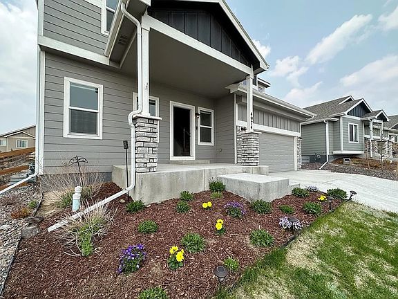 Welcome home to this stunning and modern property located in the desirable Bradley Ranch community! This beautiful home is perfect for those who want to live in a peaceful and serene environment, while still being close to all the conveniences of city living. With over 3,000 square feet, there is plenty of room for families and guests. The main level features an open floor plan, with a spacious living room, dining area, and a gourmet kitchen that is sure to impress. The kitchen boasts top-of-the-line stainless steel appliances and a large island with plenty of counter space -a perfect space for hosting dinner parties and entertaining. The main level also features a private office, which is perfect for those who work from home, and a half bathroom.The upper level of the home includes a luxurious master suite, complete with a 2 closets - one large walk-in closet and an ensuite bathroom that includes a double vanity and a soaking tub. The other 3 bedrooms, full bathroom, and laundry room are also conveniently located on this level, making it easy to keep everything clean and organized. Outside, you'll find a beautifully landscaped yard, with a spacious patio that is perfect for enjoying a summer barbecue or simply relaxing and taking in the stunning views of the surrounding mountains. The home also includes a THREE-car garage, providing plenty of space for vehicles and storage. The community features multiple parks and playgrounds, as well as miles of walking and biking trails. The location is also convenient for commuters, with easy access to major highways and phenomenal views of Pikes Peak!
