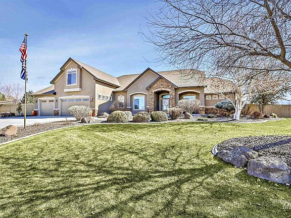 This gorgeous, custom built single level home in Meridian, quietly sits on just over 1 acre. It features a HUGE 42x60 ft SHOP that is fully heated and insulated, 2-50 amp plugs for RV hookups, and will comfortably fit all your large toys. The home offers soaring vaulted ceilings, with newly refinished hardwood floors, rich custom cabinetry throughout, as well as an upper bonus room with bath for your guests. Wonderful location, just minutes away from the interstate, for quick commutes. See amenities list.