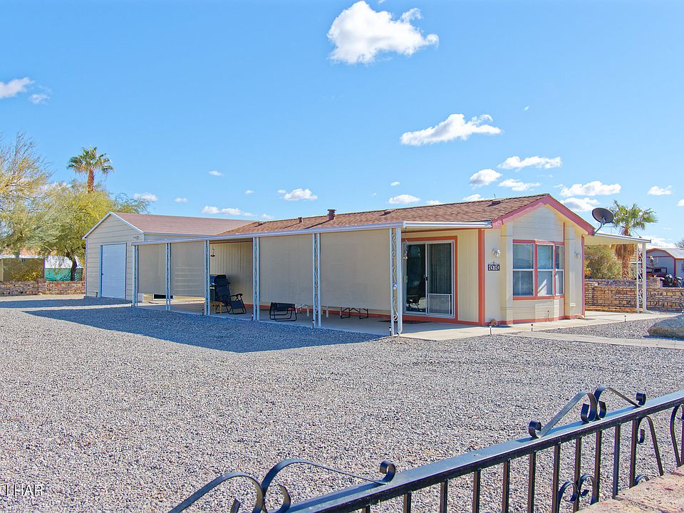 Immaculate home on corner lot on the southside of Rainbow Acres. Open concept, Laminate floors, granite countertops and newer roof. Recently built 22 X 27 garage with half bath for toy storage/workshop needs. Full RV hookup and easy desert landscape with quick access to desert trails. Available furnished. Come and get it!