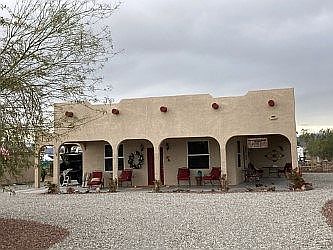 BRING OFFER Before listing with Realtor! 1056 sq ft Spanish style home on the south end of Rainbow Acres. 2 BR; 1 1/2 bathrooms; forced air heat pump, house recently fogged stucco; all kitchen appliances included; new kitchen countertops and double Kohler cast iron sink with Delta faucet; RO water system; soft water system; new 54 gallon water heater; newer Whirlpool washer & dryer; newer carpet and paint in bedrooms; newly painted throughout inside; 5 year termite warranty, upgraded landscape with Mexican brick extended fencing; 2 (50 amp) RV hookups and; Insulated12'x16' Tuff shed w/shelves & extra refrigerator and freezer; underground battery timed water system. SHOWN BY APPOINTMENT ONLY *Adjacent lot w/Kool Kover listed separately*