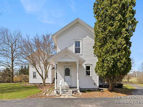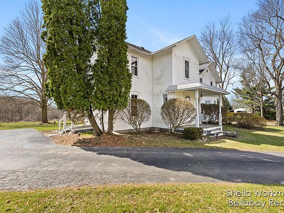 Welcome to 4975 E Sager Rd in Hastings, where you can enjoy the beautiful views and wildlife of 73 acres in the privacy of your own home. This farm house is very spacious with 5 bedrooms, 2 full baths, formal dining room, kitchen with eating area, laundry/mud room, and possible den/office. All appliances are included. This property also has a barn and 3 other outbuildings along with a detached 2.5 stall garage.