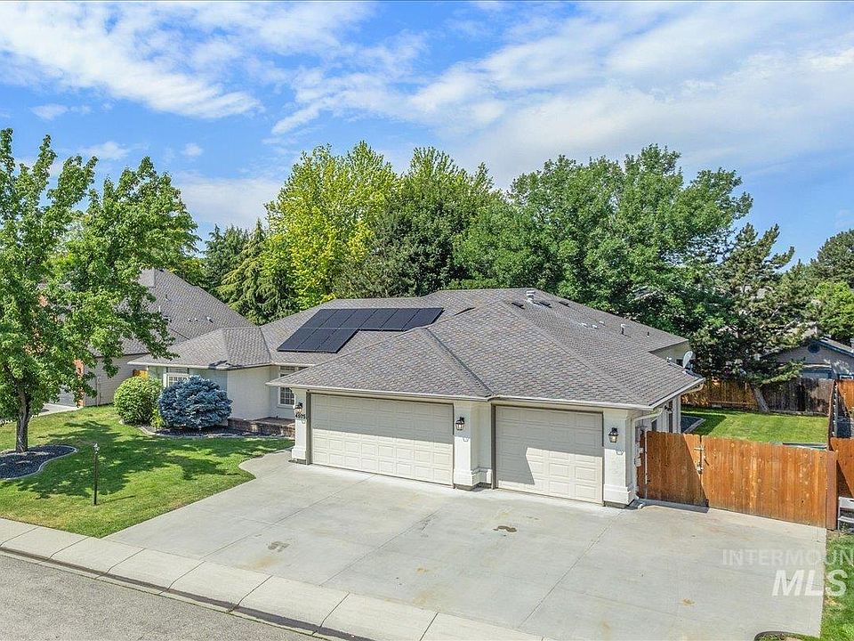 Welcome to this beautifully renovated single-level home in a quiet, tree lined neighborhood. Inside, you will find newly refinished hardwood floors throughout and thoughtful updates that make everyday living comfortable and easy. The wrap-around kitchen features granite counters, a breakfast bar, new stainless appliances including a gas range and counter-depth fridge, plus a walk-in pantry. The spacious primary suite has direct access to a private covered patio, perfect for morning coffee or relaxing in the evening. The ensuite bathroom feels like a spa with a walk in shower with floor to ceiling tile, two benches and separate vanities, plus a large walk in closet. Out front, there is a welcoming courtyard. In back, the yard is landscaped to feel private, with a covered patio and fire pit ready for you to enjoy. Solar panels (valued at over $30k) are included, offering energy savings right from the start. This home combines modern updates with classic charm in a setting you will appreciate every day.