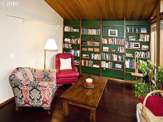 Adorable updated contemporary situated on a tranquil, park-like .23 acre lot surrounded by quiet streets. Living room with wood floors, vaulted ceiling, wood-burning fireplace, & peaceful library nook with built-in bookshelves. Wood floors & vaulted ceiling in living room, updated kitchen, & workshop off of garage. A beautiful home in a wonderful location!