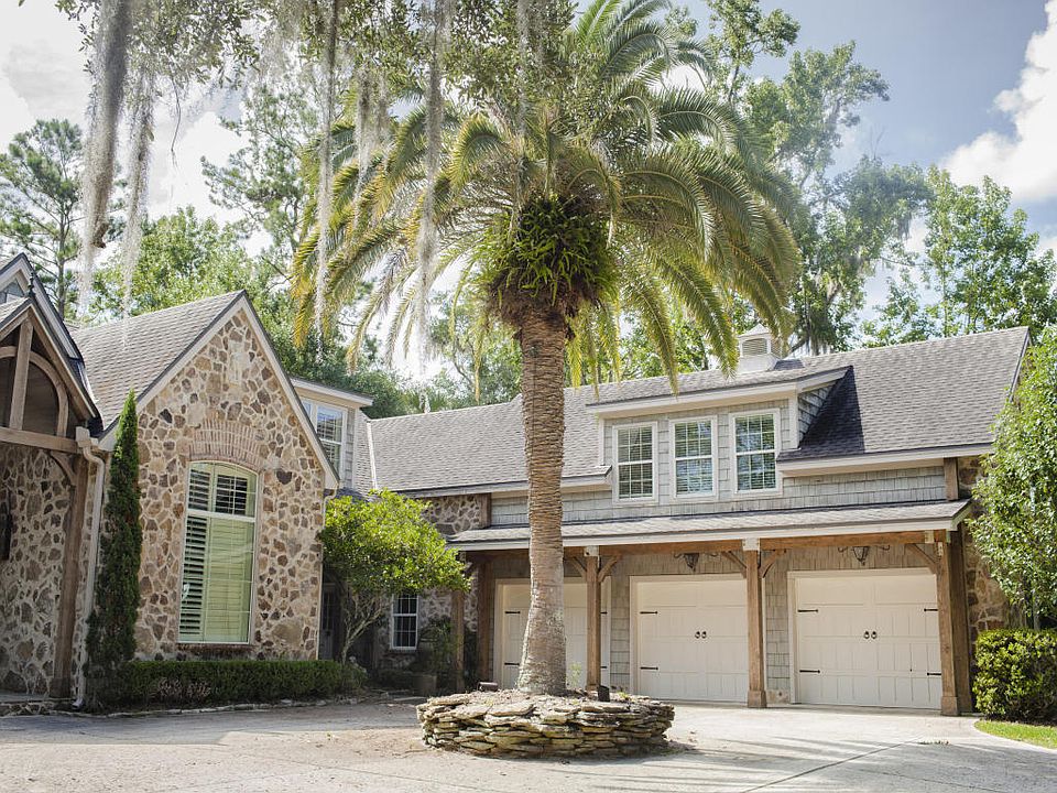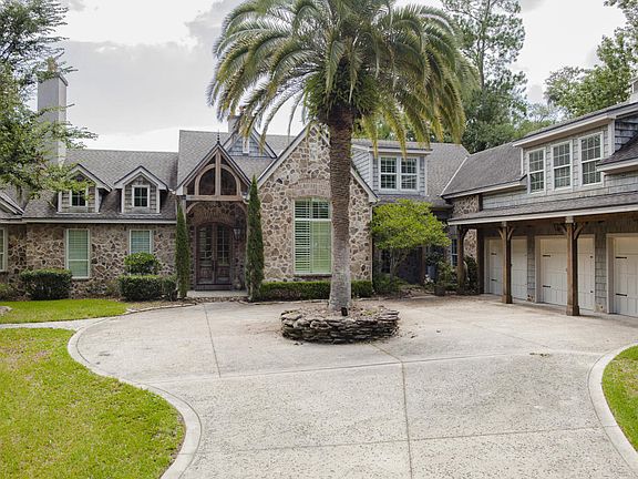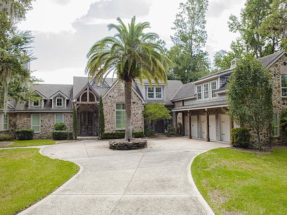 Spectacular French Country custom estate home, in the heart of Ponte Vedra. Own one of the most unique and beautiful homes in the area on almost five acres of gorgeous and valuable acreage. Enjoy the views from inside and out overlooking a tranquil 1/2 acre stocked pond with dock and a bridge to a vine covered, trellised patio area-perfect for outdoor dining . Home features natural field stone exterior.Enter through double, cypress doors imported from Chile. Grand slate entrance takes you to soaring ceilings accented with centuries old cypress beams along with two massive fireplaces. Hickory and Oak floors throughout, Gourmet kitchen, farm sink with copper fixtures and copper pendant lights, three car garage.Upstairs wing over garage is perfect for teens or guests.