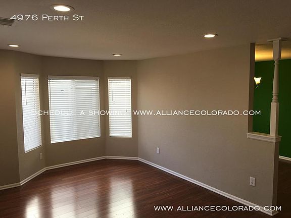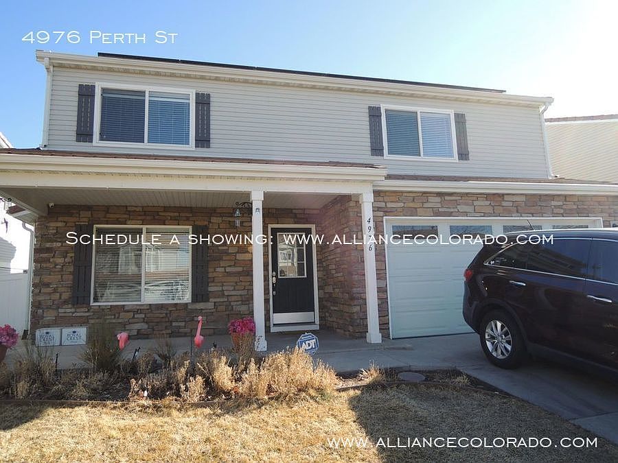 Due to COVID 19, we are currently offering virtual tours only for this home based on listing photos at this time. We will begin in-person showings on September 1, 2020. alliancecolorado.com Beautiful, spacious Green Valley Ranch home with custom upgrades throughout and solar panels. Close to Buckley AFB and Denver International Airport. Walking distance to Florida Pitt Waller Elementary School. Open family room, formal dining, separate living room, and large kitchen on main level. Beautiful installed engineered wood floors throughout house - no carpeting. Upper landing has extra space for office or sitting area. All bedrooms located upstairs. Master bedroom with walk-in closet, large soaking tub, and built in space heater. Owner pays HOA dues. Built in 2002 2,732 sq ft 4 beds, 2.5 baths All kitchen appliances included Upgraded LED lighting and fixtures throughout Hard-wired close-circuit security cameras Washer and Dryer included Central heat and air conditioning and additional ceiling fans in most rooms Fenced / landscaped backyard with in-ground irrigation gardens and composter included Lawnmower provided by owner 2 car attached garage Solar panels provide most or all electricity based on usage. Panels are monitored and maintained by SunRun, connected to the Xcel grid. Solar panels installed and paid for by owner; tenant responsible for any electric use beyond their production capacity. 4976 Perth Street, Denver, CO 80249 alliancecolorado.com Alliance Property Management, Inc. www.alliancecolorado.com 719-492-5530 Available September 5th Rent: $2495 per month; tenant pays all utilities 12-month lease Security Deposit equal to one month rent (credit dependent); due at lease signing 35 application fee per adult (background check includes credit, criminal, evictions and rental history, plus verifiable income at least 3x rent) Pets ok up to 40 lbs (cats and dogs); subject to owner approval (no pit bulls or pit mixes per Denver City and County ordinances), nonrefundable pet fee, and monthly pet rent. NO SMOKING, NO GROWING alliancecolorado.com