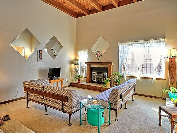 Lovely townhome built by Watson Home Builders in 1983 w/private backyard view of Petroglyph open space. Your private slice of nature. Home has rich, warm tongue and groove vaulted ceilings. Dramatic sunken living room area with wood burning fireplace. 3rd bedroom is split away to make a perfect office/study. Seller upgraded the electrical service to 200 amp plus added safety GFCI's where needed. Refrigerated air, furnace and windows upgraded. Roof replaced w/TPO membrane in 2012. Newer stucco. Home was painted and recarpeted in 2015. ABC seamless gutters added recently. Jacuzzi tub added in guest bath and master shower retiled in 2015. Ms. Clean lives here. Close in west side location close to Bosque walking and biking trails, Cottonwood shopping and Paseo del Norte.