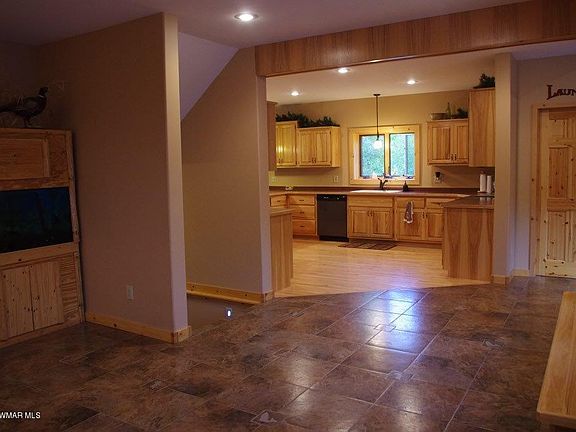 Gorgeous log sided home on an exceptional, completely private 5 acre wooded property just minutes from downtown Bemidji. Home is constructed with insulated concrete forms and has stone and log details throughout. Featuring hardwood maple flooring, hickory cabinets, large front and back entryways, vaulted ceilings with T&G, stone fireplace, wrought iron and log railing details, master suite with