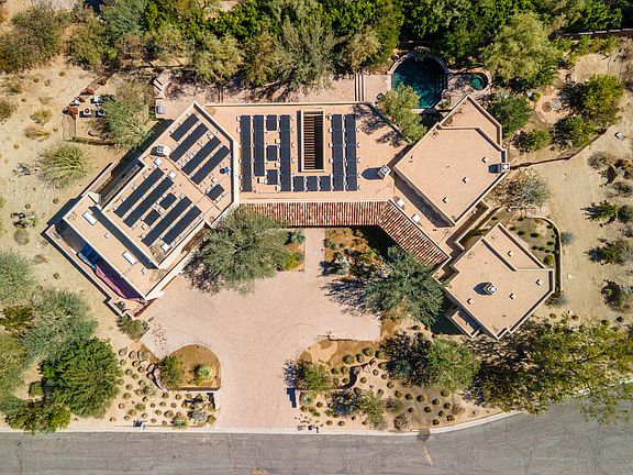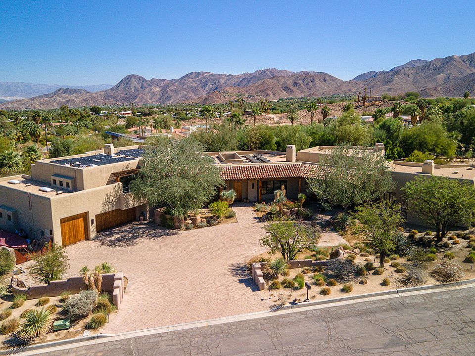 Extraordinary Santa Fe Style Estate Home In South Palm Desert Neighborhood Of Cahuilla Hills. Resting on over an acre, this custom built home resides hillside and offers tranquility and breath taking natural beauty all while being minutes from famed El Paseo. With 5 bedrooms and 6 bathrooms, this spacious home features high ceilings and walls of glass bringing in abundant natural lighting throughout. The warm master suite is at south wing & features a fireplace, walk in closet and large spa like master bathroom. Guest house features a living room with fireplace, kitchenette and en suite bedroom. Backyard offers tons of privacy with a pool and spa, seating area, outdoor kitchen area plus a fireplace. For car aficionados, this home has a four car garage along with RV garage suitable for larger RVs. Cahuilla Hills is a scenic area in one of the best parts of Palm Desert, with hiking and proximity to all of the desert's best shopping and dining. This is also governed by the county, so Short Terms Rentals are allowed (Buyer to verify). Enjoy minimal electricity cost with the brand new $80,000 solar system that is paid off.