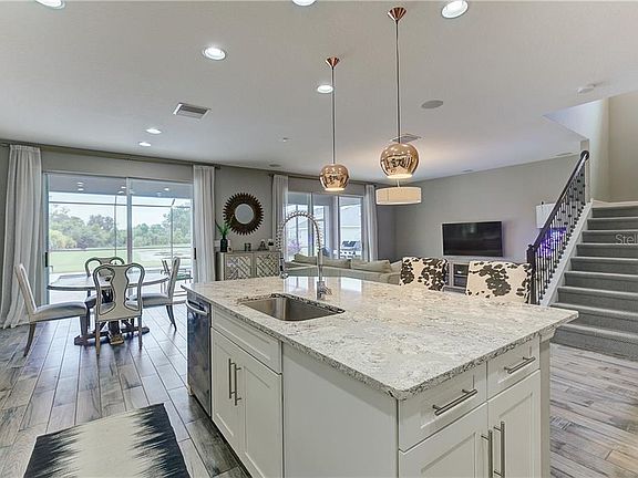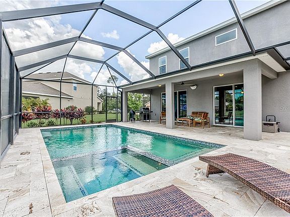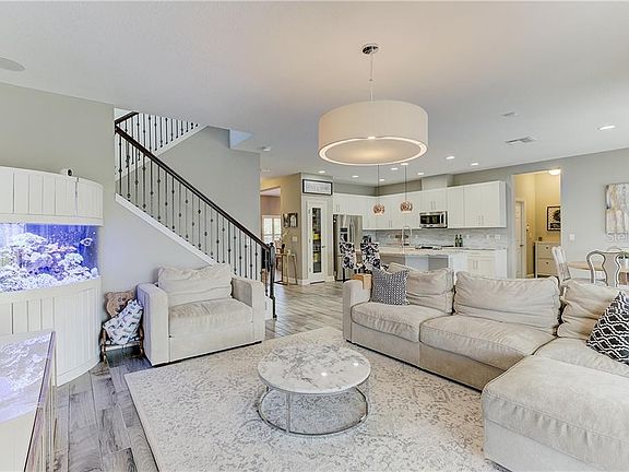 Located in the upscale gated community of Oakleaf Hammock, this spectacular 2 story home shows like a model with every upgrade imaginable! As you walk through the front door you are immediately embraced by the wood-like plank ceramic tile throughout, a formal dining room on your left and office with glass french doors on your right. Walk further into a very open great room plan overlooked by a chefs dream kitchen with top of the line Cambria Quartz counters, over sized island, stainless steel appliances including a Samsung double oven, glass door pantry and tons of cabinet space. Double sliding doors take you out to the spectacular lake views from over sized caged saltwater pool surrounded by travertine tile and extended covered patio. Plenty of space upstairs with huge master bedroom, master bathroom with double shower head walk in shower, extended walk in closet and double vanity, 2nd bedroom with own private bathroom and 2 additional bedrooms plus huge bonus room for the kiddos to get away. Enormous 3 car + tandem garage with enough room for all cars, storage and a workshop. Lot is an over sized pie shaped lot with amazing sunset views! Community has a basketball court, picnic pavilion and playground all for the low hoa fees and NO CDD! Close to I-75 and just minutes from shopping center, outlets and restaurants and to Tampa/St Pete or Beaches of Bradenton or Sarasota.