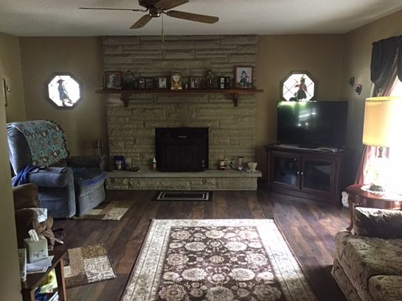 Country Living!! 4 bedrooms, main floor laundry, newer flooring, septic, & well pump, furnace & central air. Wood burning fireplace, Metal roof is approx. 10 yrs old, 2 car detached garage, rear deck and covered front porch. Situated on 6 acres that includes a creek that runs to the Tippecanoe river located across the road.