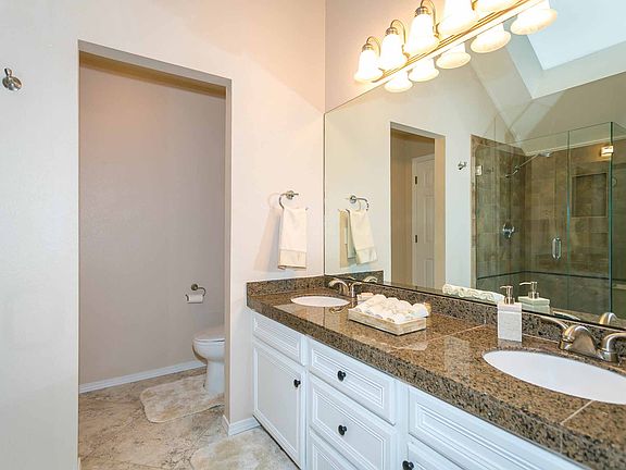 Rare find! Beautifully updated home located on a quiet street, steps from the neighborhood walking path & 3 blocks to Westlake Park! Fresh interior and exterior paint, new deck in the private, green yard! Wood-style floors throughout the main. New carpet. Updated kitchen w/ granite counters & under cabinet lighting. Vaulted living, flowing with natural light. Two master suites! Abundant storage- 2 car garage! Award winning LO schools!