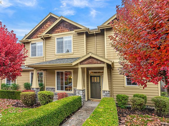 Welcome to this beautifully crafted 4-bedroom, 2 ½ bath home featuring an open floor plan and approximately 2,480 sq ft of thoughtfully designed living space. The gourmet kitchen, is equipped with granite counters, stainless appliances, gas stove, island bar, and a spacious walk-in pantry. The kitchen flows seamlessly into the large family room/living room with high ceilings, gas fireplace and loads of light. The formal dining room boasts high ceilings and elegant crown molding, perfect for hosting gatherings. Retreat to the spacious, spa-like primary suite, where you’ll find dual walk-in closets, a soaking tub, and tiled shower for a true sanctuary experience. Upstairs you’ll also find the loft bonus room and three more bedrooms, plus laundry room. You'll love the storage here with plenty of space to spare in the 3-car garage. The main floor boasts hardwood floors and brand new carpet on the stairs and upper floor. With 9-foot ceilings throughout, this spacious home feels open and airy.The serene backyard is a true oasis, with a sprinkler system, water feature, pond and private deck, ideal for family BBQs and entertaining. Situated on a quiet, dead-end street in the desirable Beaverton School District, this home is close to all the stores and amenities you may need, making it a fantastic choice for buyers looking for comfort, convenience, and space to grow.