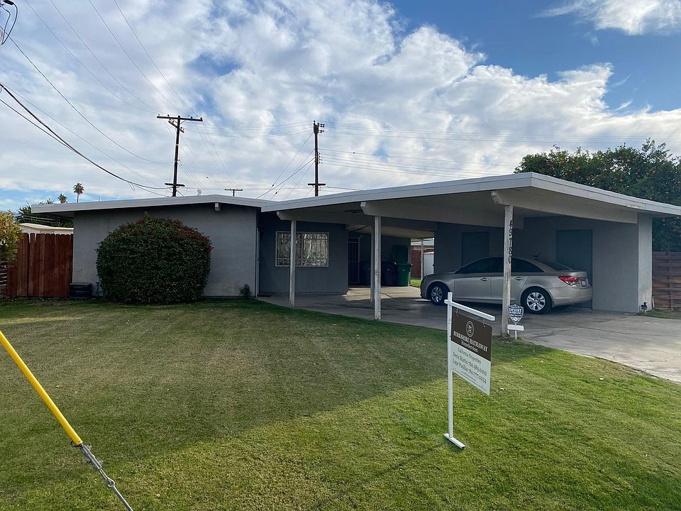 Don't miss the opportunity to live close to shopping and restaurants. This is a standard sale and seller will respond quickly to all offers. This home has a nice size living area off kitchen and dining. Home needs updating, but is in great condition. HAS NEW ROOF, AC Condenser replaced in 2018, new gas line from meter to house, new irrigation valves. Has nice large front and side yards (off patio) with large orange tree which bears tons of fruit. Backyard is very low maintenance and has 2 sheds. One shed has electricity. DISCLOSURE: There is no quick release on wrought iron bars covering bedroom windows.