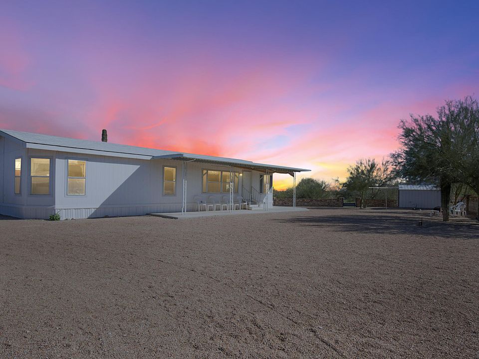 Location and VIEWS! Well kept, large home on over a half acre in Rainbow Acres. Situated at the end of the street with Amazing views of the Sonoran Desert. This Roomy lot fenced with mexican brick has plenty of room for guests with Two RV gates and 3 wrought iron gates. Home has large living room and kitchen, skylights, casual and formal dining rooms, laundry room and a large master suite. No issues with storage here as there are many cabinets and closets as well as 2 storage buildings. Lovely cactus garden, Fruit trees and saguaro cacti on irrigation. Awning provides shade over patio. This is a DOUBLE lot, allowing for 3 RV hookups (1-30 amp present). Seller is offering $5000 flooring allowance. Come find home in this RV friendly neighborhood!