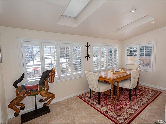 Welcome to this impeccably maintained, exceedingly charming home with the perfect location near Arapahoe and Holly! This house exudes the loving care that has been put into it for many happy years. With sparkling new carpet and new paint throughout, you are sure to feel right at home! The picture-perfect bay window in the living room awaits your plants, pets, or a sunny reading nook. A beautiful fireplace with white mantel, wood floors, vaulted ceilings and bright skylights make the living space both airy and cozy. Spend your mornings in the heated bonus room, enjoying breakfast overlooking the backyard through abundant bright windows. Enjoy sunny summer afternoons tending to the many garden beds and perennial plants on the property, awaiting your green thumb! Whip up a meal in the updated kitchen, featuring newer appliances, sparkling countertops, and crisp white cabinetry with glass-front accent cabinets. The primary bedroom creates space for a tranquil retreat with a bay window overlooking the backyard. Both baths in this home have been tastefully updated to be bright, airy and modern. The lower-level office is the perfect space for privacy for even the busiest worker bee. A lower-level bedroom with adjacent half-bath offers wonderful separation of space for guests! The home’s outdoor dining space boasts room for a grill, and the spacious backyard promises many days spent in the sunshine and evenings under the stars. Flower beds in back and front await your favorite blooms. The outdoor space features a shed for all your gadgets and gizmos. A two-car garage offers ample room for vehicles and storage. Fabulous Centennial location, walking distance to shopping. Nearby dining and entertainment galore! Bonus futures include new furnace and central air in 2021 as well as a sewer main line replacement in 2017!