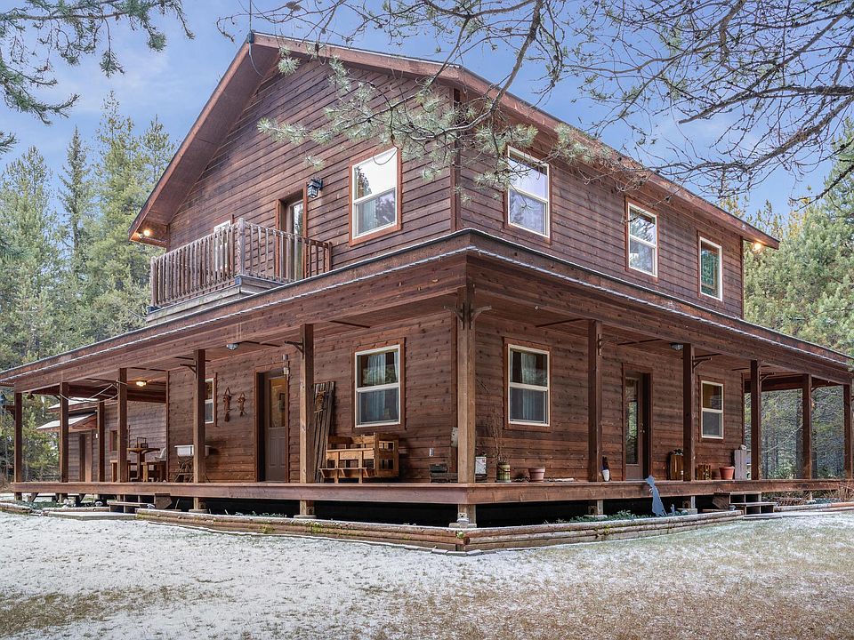 Remarks: This peaceful property has so much to offer! 20 acres of beautifully wooded land to explore and enjoy, complete with your perfect garden, lovely path around the land, and several open spaces to creatively work the acreage. Cozy yet spacious home has a grand loft bedroom with large full bath. Extra room and sizable full bathroom on main floor. Open living area with vaulted ceilings and large windows providing an abundance of natural light. Wonderful wrap-around porch to relax on. Attached, finished two-car garage. Large 40X40 shop with unfinished 1bed/1bath living quarters. Back of property sits right against Stillwater River making for incredible views! Though easy to access right off the highway, this property provides the quiet escape you're looking for. Radon: Well Log Available