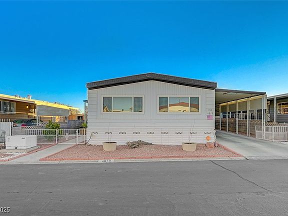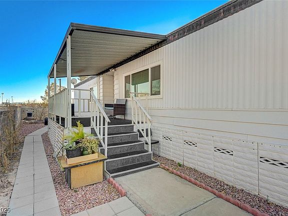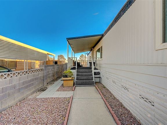 Welcome to your 55+ gated community retreat! This converted property offers an option to assume a VA loan at 3.2% interest—an unbeatable value! Enjoy low electricity bills with solar panels (electricity) and a brand-new electrical panel/breakers. Stay secure with an owned Vivant alarm system (conveys at zero cost to new home owner) and smart home features like app-controlled appliances. The roof was resealed just a year ago, and brand new energy-efficient double pane, Low-E windows keep your home comfortable year-round. The shed has electricity, perfect for a workspace or hobby room! Relax outdoors with a covered patio and producing pomegranate and orange trees in your yard. Water is included in the monthly HOA dues. Located near shops, restaurants, Raiders Stadium, and casinos, this community offers a clubhouse, pool, spa, RV parking, and regular events. Furniture conveys with sale of property (optional) for a seamless move.