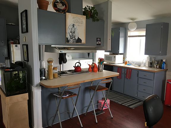 Updates double wide in one of the best lots in the valley west mobile estates. New flooring, and updated bathroom. Great for small family or a college student looking for great investment. Large fenced in backyard with two raised beds for a garden and a mature apple tree. Come take a look!
