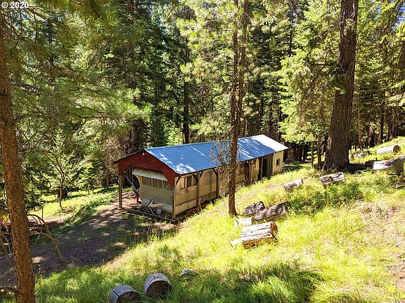 Beautiful and rare property near Eagle Creek now for sale in Baker County! This property consists of two 2.5 acre lots, beautifully forested with views of the hillsides. Stylish retro 1958 Rex travel trailer is under a solid snow roof with additional storage shed attached. Generator power. Water from a developed spring on adjacent property. The property features Excelsior Gold and other mineral claim. World class fishing just down the road, wildlife and hiking in every direction! Call today!