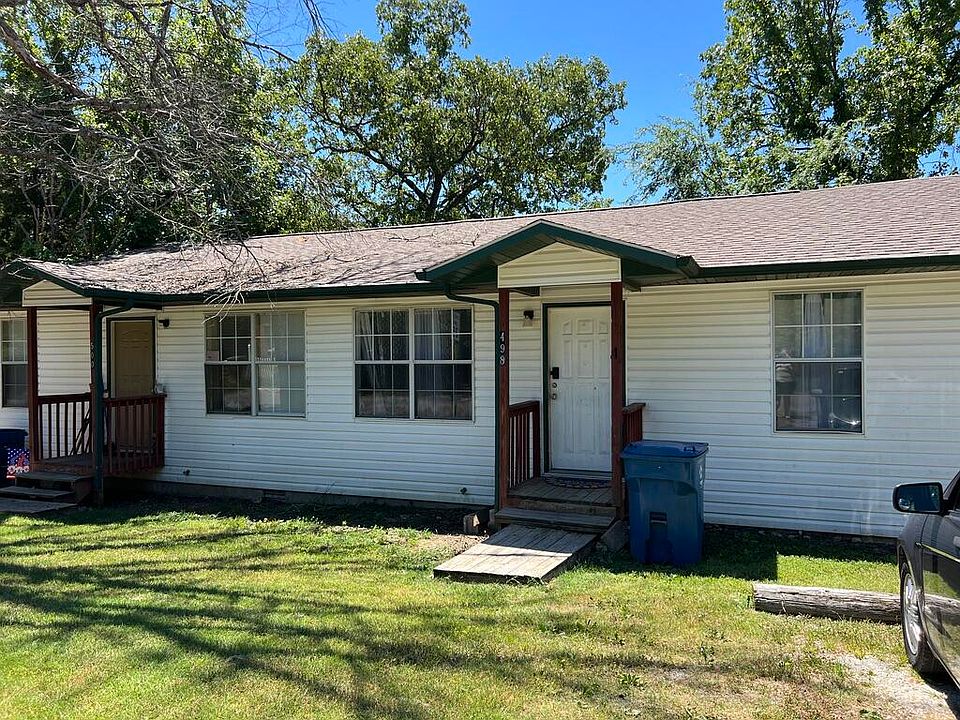 This Duplex is 1 of 4. They are located in the heart of Forsyth, Mo. 2 bedrooms 1 bathroom, with a washer and dryer closet in unit. Walking distance to grocery store, restaurants, 3 duplexes are one level. the 4th unit does have one side with stairs.