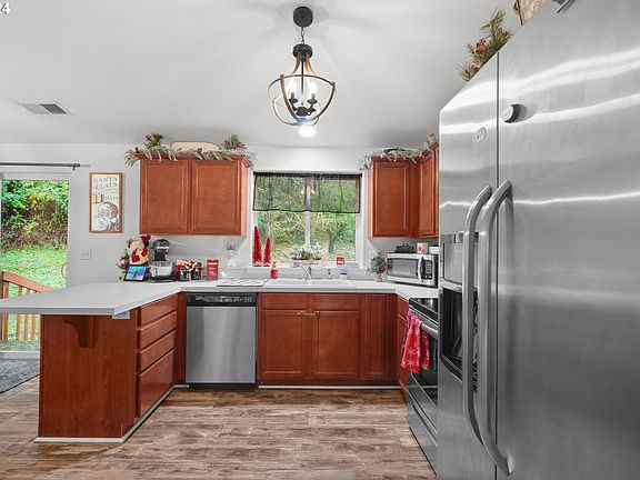 Welcome to 498 E B Avenue! Discover this exceptional, rare to market 5-bedroom, 3-bath split level home, featuring a spacious and updated floor plan. Nestled in a serene hillside location, this property offers privacy while remaining just minutes away from local schools and shopping. Enjoy easy access to I-5, with the coast only an hour away and Eugene less than 30 minutes from your doorstep. As you enter, you will be greeted by a bright and airy kitchen and living room, complete with vaulted ceilings and new luxury vinyl plank flooring—ideal for entertaining. The kitchen boasts updated stainless steel appliances, generous counter space, and a large pantry for all your storage needs. Adjacent to the kitchen, the dining room provides a seamless flow for gatherings & access to the back patio. The main floor features two well-sized guest bedrooms and a full guest bath, along with a spacious master suite that includes a walk-in closet and an ensuite bathroom with a walk-in shower. Downstairs, you will find two additional large guest bedrooms, perfect for multi-generational living or a home office. A full bathroom and a laundry room with built-in storage add to the home's functionality. The attached oversized two-car garage, equipped with built-in shelving, offers plenty of space for storage or a workshop. With ample room for RV Parking as well! Do not miss the opportunity to make this beautiful home yours!