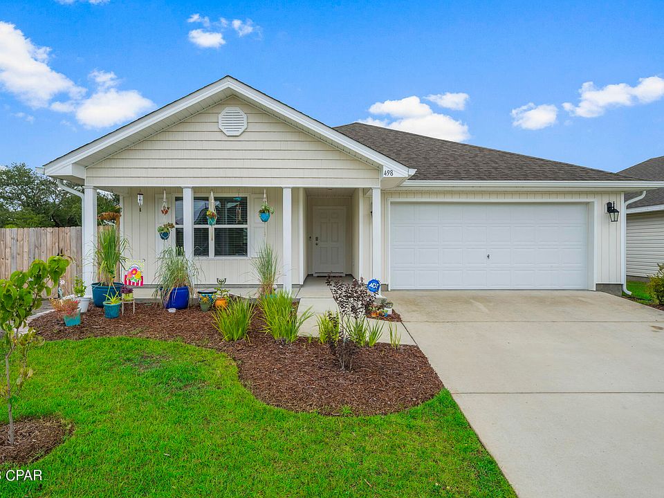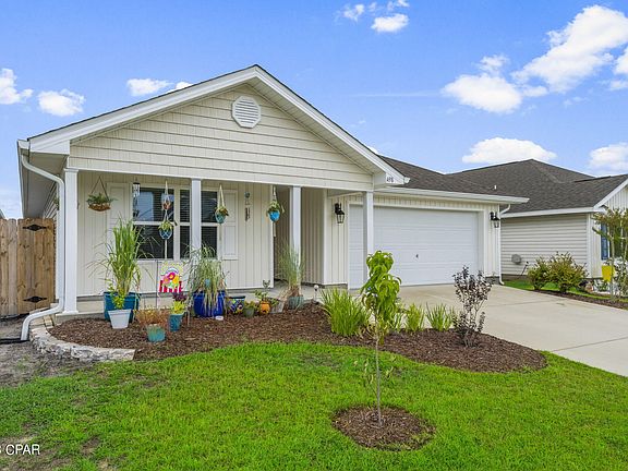 Currently under contract with a contingency. Seller welcomes showings and will consider all back up offers. Beautiful Bridge Harbor 4 bed 2 bath ''Ryder'' floorplan home with a ton of upgrades! Entertain your family and friends in your spacious home, screened in back porch or outside in your fully equipped outdoor kitchen. This home has the advantage of having a gas stove along with gas connection for the outdoor grill. Inside the home you have 8' ceilings, two guest rooms and a guest bathroom are off the foyer, there is an additional bedroom and laundry room across the hall. The main living area is an open floor plan with a spacious kitchen with large island, pantry, dining area and living area. The roomy master bedroom is off the living area and has plenty of room for all of your furniture and a sitting area. The master bathroom has two walk-in closets, toilet closet, double vanity and walk in shower. Additional highlights include covered front porch, ceiling fans added in all bedrooms and back porch, blinds added throughout the home, stainless appliances, gutters added, privacy fence added with double gate and rock was put down to be able to park items behind the fence. In the garage hanging storage and a countertop work bench were added which will stay with the home. The outdoor kitchen is an incredible bonus to the home. There is a paver dining area, bar area with granite countertops and kitchen sink, outdoor mounted tv that conveys, outdoor refrigerator that conveys and room for all of your cooking needs such as grill, smoker, flat top, etc. There is a liquid propane tank to supply gas to the home and outdoor kitchen. The outdoor furniture, grill and smoker are negotiable, but the flat top grill is not. The back yard has fig trees and a tea olive tree planted. The far side of the house has an open storage area great for kayak storage. From the back yard you have a view of the beautiful oak trees at the park nearby along with an excellent cross breeze year-round. This home comes standard with a Smart Home Technology package which includes a KwikSet keyless entry, Skybell doorbell, automated front porch lighting, an Echo Dot device, and Quolsys touch panel which can be integrated to control your lighting,