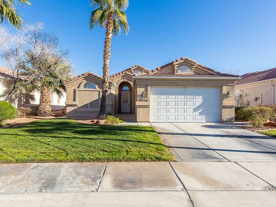 This beautiful home has a southeast back orientation with a view of the mountains! The home is light and airy with vaulted ceilings, lighter finishes, and a beautiful custom glass front door! The home is turn-key ready, and includes all of the furnishings that are in the home, beautiful high-end dishes, pots/pans, utensils, washer, dryer, refrigerator ...all it needs is you!! The home features 2 bedrooms + den (with double doors, built-in desk and bookcase), 2 baths, great room with vaulted ceilings, bay window at dining area + breakfast bar with bar stools, 2-car garage with lots of built-in storage cabinets! Other features include a built-in central vacuum system, a newer water heater which was replaced in 2015, newer appliances (dishwasher, refrigerator, washer & dryer), which are about a year old. There is also a reverse osmosis filtration system installed. This is a gated, 55+ community, residents must be age 55 or better. This is a must see!