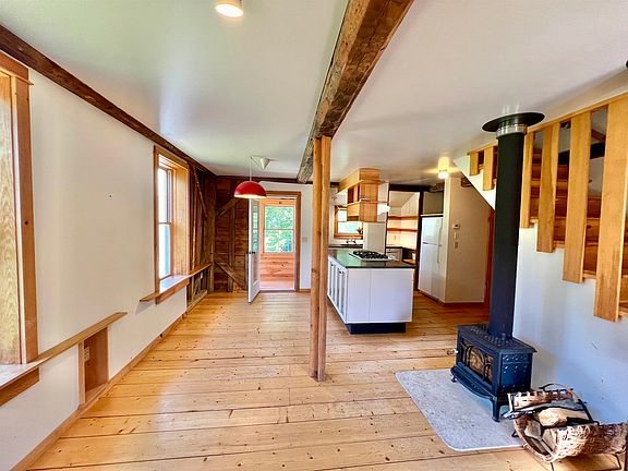 498 Goodalville Road is made up of three residential spaces, and a barn, on 24 acres. This incredible value is just down the road from the intersection of Route 100 and Route 30 in Rawsonville, minutes to Stratton, Bromley, and Magic Mountains. The 1860 Farmhouse sits overlooking the river. The three bedroom structure was lifted and a new foundation poured, modernizing the old structure while respecting its origins. The garage was once an art studio, and currently has an apartment, which is adjacent to the barn. The Schoolhouse was completed in 2009, and this structure incorporates the original schoolhouse that was on the property. The beams can be seen from the interior of the three bedroom, three bathroom modern style home. The history of this property is special. Former owner Meyer Schapiro has been called “one of the most important art historians of the twentieth century.” The current owners have respected the history by restoring the structures and creating more space to be inspired. Photos to be added of the Farmhoouse upon completing interior paint. Come take a look.